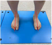 PURPOSE This study explored foot angle control’s influence on lower extremity joints’ kinematic variables during bodyweight squats in adult women. The study compared correlation variances among kinematic variables to evaluate foot angle control’s impact on knee stability and movement performance. METHODS Participants included 29 healthy adult women over 20 years old. Each participant completed three sets of five repetitions under two conditions: foot angles of 0° and foot external rotation angle of 30°. Data analysis used Cortex 8.0 software. A paired sample t-test compared lower limb joint angles and center of mass (COM) height of the pelvic region based on foot angle. The Pearson correlation coefficient was calculated to assess correlations between each dependent variable; to analyze differences, Fisher’s Z transformation was applied to significantly correlated pairs. Statistical significance was set at p < 0.05. RESULTS Findings indicated that, compared to 0° (p < 0.05), at a foot external rotation angle of 30°, hip joint abduction, knee joint flexion, and ankle external rotation angles significantly increased, whereas the knee valgus angle significantly decreased (p < 0.05). Moreover, at the foot external rotation angle of 30° (p < 0.01), pelvic COM’s vertical movement range increased, resulting in deeper squats. Correlation analysis among lower extremity joint kinematic variables under different foot angle conditions showed no significant differences. CONCLUSIONS At a foot external rotation angle of 30°, adult women performed bodyweight squats with reduced knee valgus angle and potentially decreased knee joint loading, indicating lower risk of injury and increased squat depth due to enhanced lower extremity joint freedom. Thus, adjusting the foot angle to 30° during adult women’s bodyweight squats can be recommended to enhance knee stability and movement performance.
