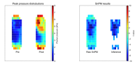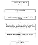 PURPOSE This study investigated how resistance training affects foot pressure during gait in older women with knee osteoarthritis. METHODS A total of 10 older women with knee osteoarthritis underwent a four-week resistance exercise intervention, and their step length, anterior–posterior center of pressure (COP) displacement, and foot pressure were measured before and after the intervention. Step length and anterior–posterior COP displacement data underwent paired t-tests, while time-series foot pressure data of the rearfoot, midfoot, and forefoot during the stance phase underwent paired t-tests based on statistical nonparametric mapping (SnPM). RESULTS After the intervention, a significant increase in step length (P = .020) and anterior–posterior COP displacement (P = .001) was observed. SnPM showed increased rearfoot pressure during early to mid-stance (6%–29%), increased midfoot pressure during mid- to terminal stance (20%–57%), and increased forefoot pressure during terminal stance to preswing (74%–89%). CONCLUSIONS Resistance exercise training improved altered foot pressure during gait in older women with knee osteoarthritis.